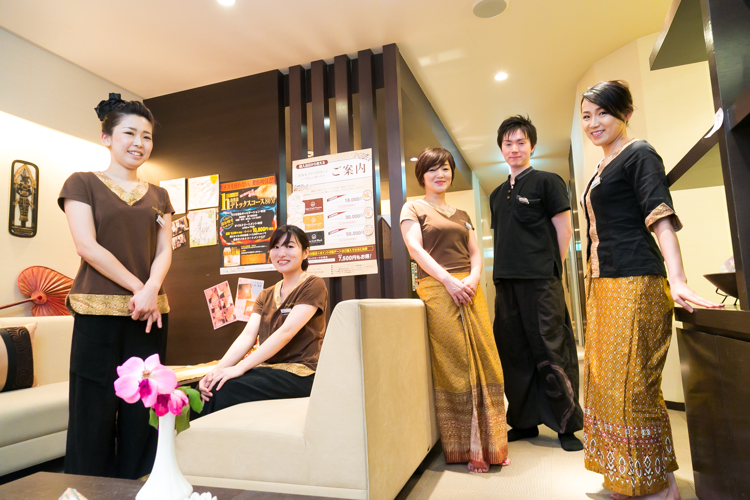 「バーン・ハナ タイ王宮式マッサージ」を運営する当社。本格志向のラグジュアリーな店舗、質の高い施術が評価され、リピーターのお客様も増え続けています。