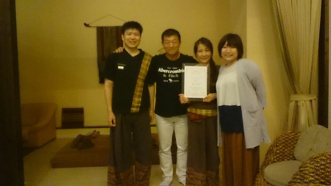 2018年9月18日 / 最終更新日 : 2018年9月18日 鵜川和久 フォレオ大津 バーンハナ店 岩渕夫妻とセラピスト梅田さん。 年間最優秀セラピスト獲得で涙ながらに喜んでいた梅田さん。 おめでとう。 俺らも嬉しかったぜぇ~