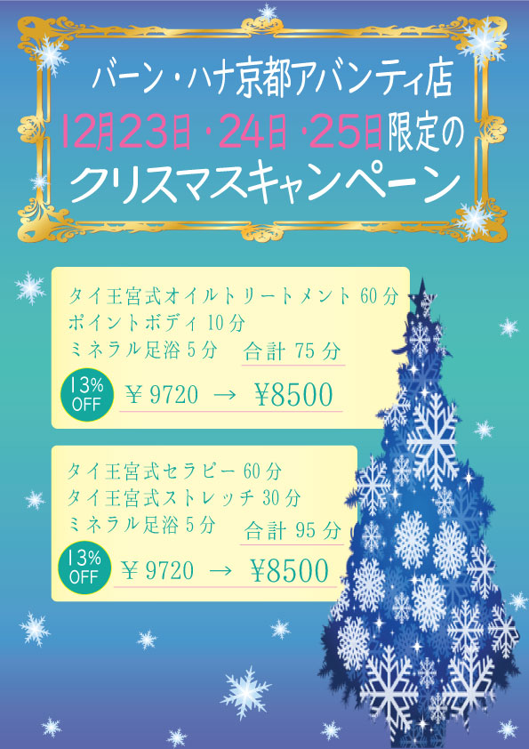 12月23日(日)・24日(月)・25日(火)の3日間限定メニュー